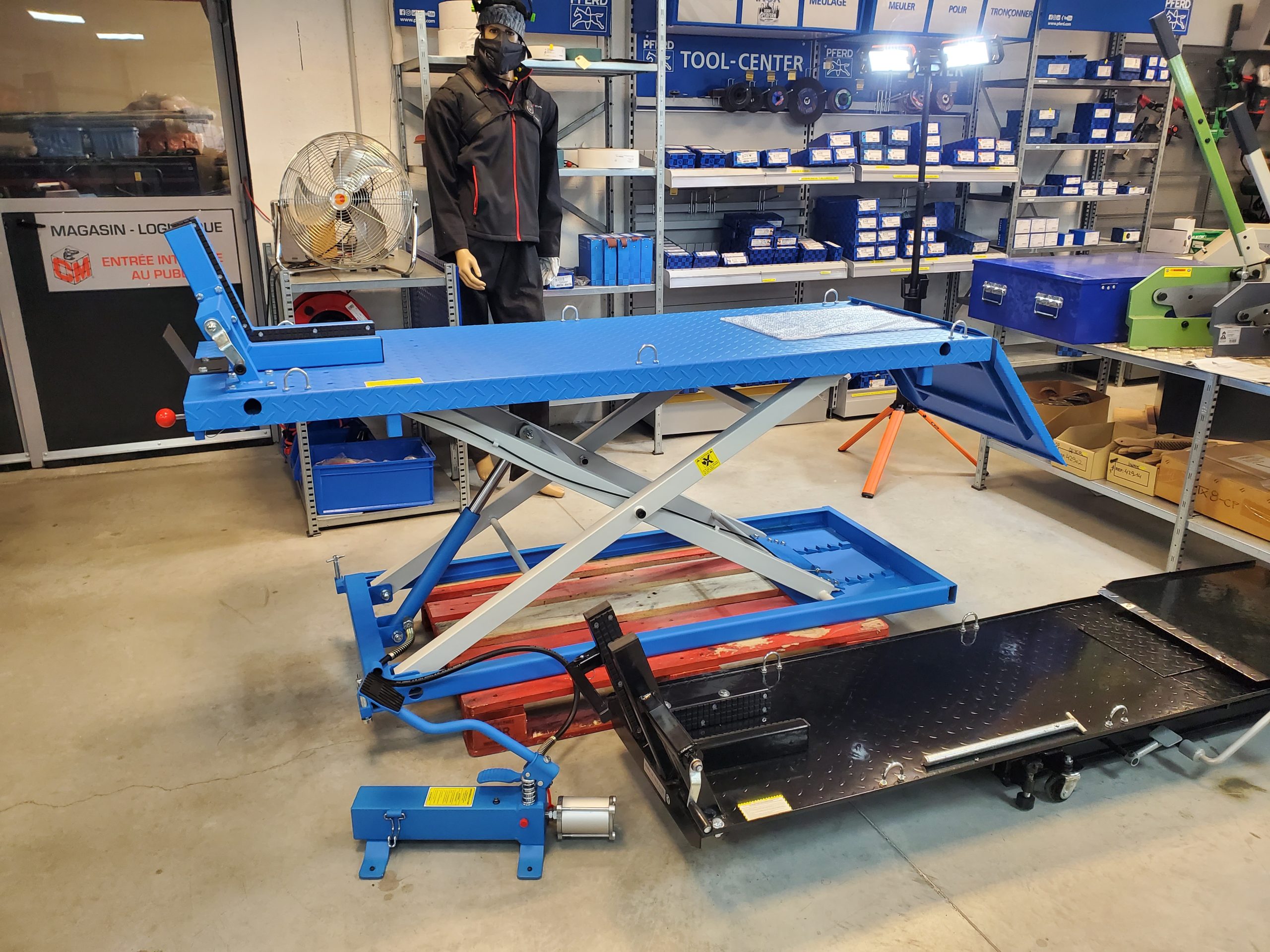 Pont moto ciseaux 700kgs manuel et pneumatique